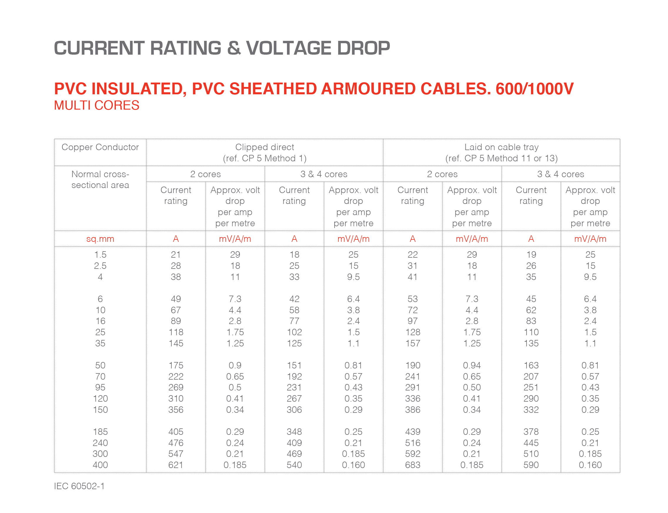 Cable Ratings & Volt Drop Master …